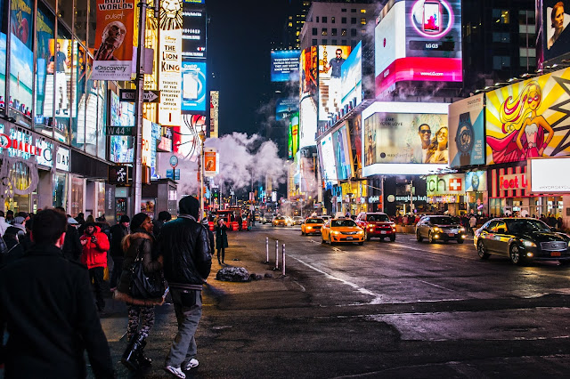 In the city, where there are many visual collections of various buildings housing signs, and advertisements, the choice of color becomes more complicated. For instance, Times Square in Midtown Manhattan is a well-known commercial junction that is distinguished by numerous layers of color contrast in environmental graphic design. The strategic decision for new signs in the region is based on how adjacent buildings appear to the eye, the color scheme of the graphics they portray, and how the new color contrasts with the background color.